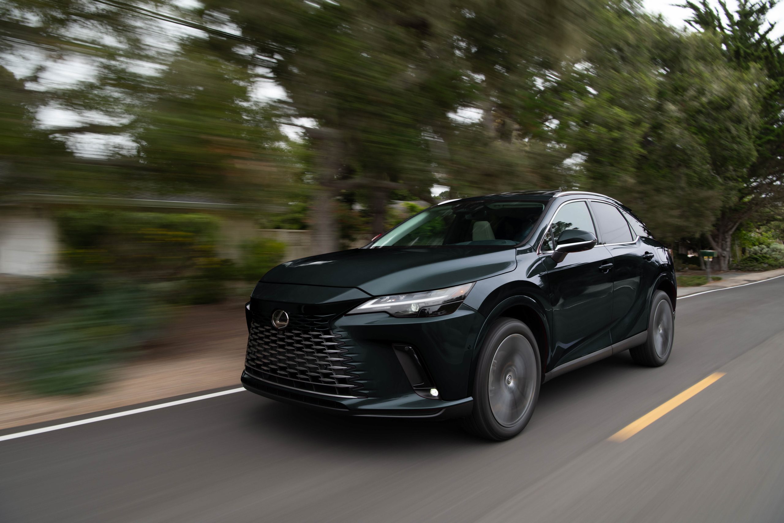 Lexus RX 350: The RX remains the brand’s benchmark mid-size luxury SUV. Its sleek and planted profile, bold spindle grille, and flowing roofline create a sophisticated presence with excellent high-speed stability and interior comfort.